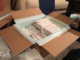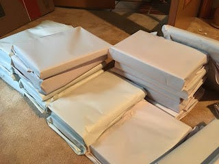 When I moved last, I wrapped every book individually into a foam material. That protected the books well (all books survived just fine), but it was expensive and time consuming. If you have not moved like this before, I can assure you that packing material is expensive. By packing each book individually in the material that you would ordinarily wrap china, you not only buy a lot of that material (at about $15 a roll) but you also pack fewer books per box. And packing each book into foam takes time. For this move, I was looking to do better. Here's what I came up with.
