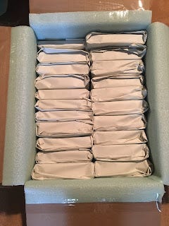 How many do you need? This is not easy to answer. I think you can get at least 15 books into such a box, up to 25 books if they are small. So, on average, think 20 books per box. I'll show you a few pics later.