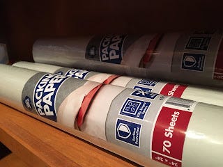 If you have a cat, she will probably want to assist you, by the way. I suggest wrapping a bunch of books before packing a box, because that way you can select the right sizes to optimally fill the box.
